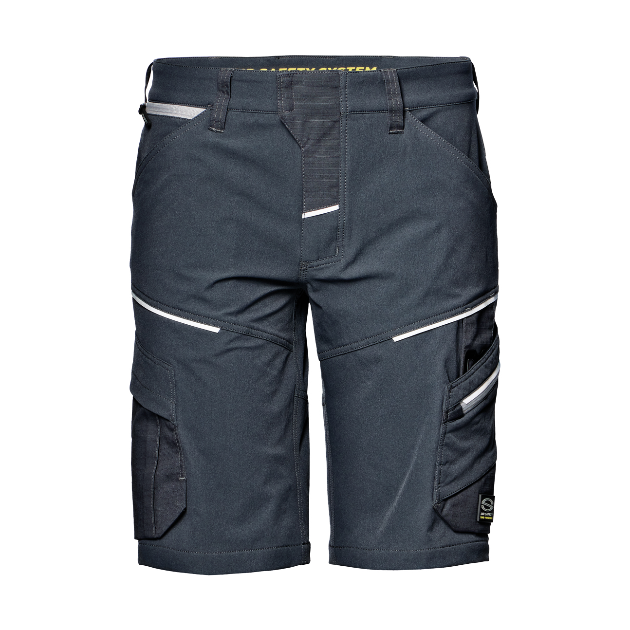 Herrenshorts für die Arbeit aus strapazierfähigem und elastischem Bi-Stretch-Material (92 % Nylon, 8 % Spandex), das abriebfest ist und volle Bewegungsfreiheit bietet. Die kontrastierenden Ripstop-Stretch-Einsätze (57 % Baumwolle, 40 % Polyester, 3 % Spandex, 250 g/m2) verstärken stark beanspruchte Bereiche. Ausgestattet mit Knopf- und Reißverschluss, Front- und Gesäßtaschen sowie Werkzeugschlaufen am Bund. Doppelte Nähte sorgen für Langlebigkeit auch bei intensiver Nutzung. Reflektierende Einsätze an Oberschenkel und Wade erhöhen die Sichtbarkeit bei schlechten Lichtverhältnissen. Die wasserabweisende Ausrüstung sorgt für zusätzlichen Komfort. Das Produkt entspricht der Verordnung (EU) 2016/425.