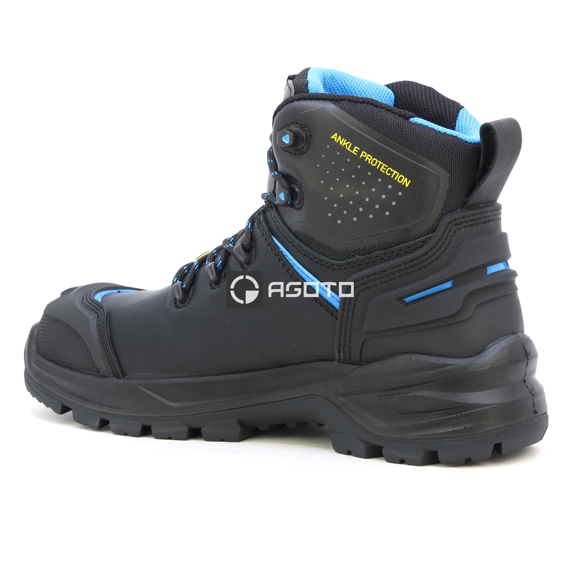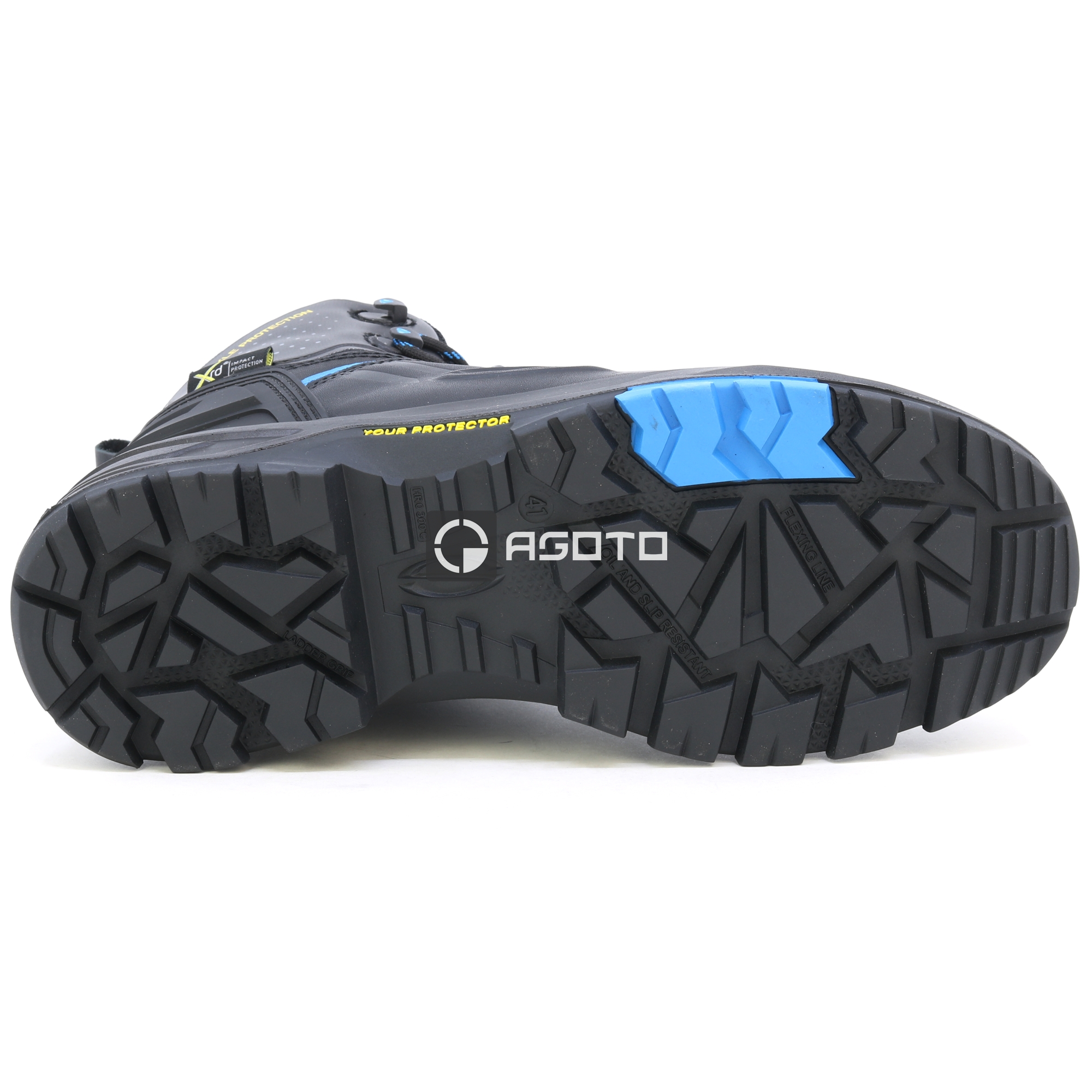 Hohe, geschnürte Sicherheitsschuhe aus hochwertigem Vollleder mit einer PS-Komposit-Zwischensohle und einer Zehenschutzkappe aus Fiberglas für maximalen Schutz. Die zweikomponentige Sohle aus Polyurethan und Nitrilgummi bietet eine hervorragende Stoßdämpfung und hohe Abriebfestigkeit. Das hitzebeständige Nitrilgummi-Profil sorgt für starken Halt auf nassen Oberflächen, während der mittlere Bereich abriebfest ist und mit speziellen Profilstollen für besseren Halt auf Leitern ausgestattet ist. Die Memory-PU-Einlegesohle mit hochdichtem Polyurethanschaum und variabler Dicke sorgt für optimale Dämpfung und absorbiert Stöße, was den Tragekomfort bei längerem Einsatz erheblich verbessert. Antistatisch, mit DRY PLUS-Polyesterfutter, das Feuchtigkeit effizient ableitet und eine Überhitzung der Füße verhindert. Die WR-Innensocke sorgt für zusätzlichen Schutz vor Feuchtigkeit. Verstärkte Schnürsenkel, eine abriebfeste TPU-Überkappe, eine verstärkte Fersenkappe, tiefe Rillen für eine effiziente Flüssigkeitsableitung und scharfkantige Profilstollen für bessere Selbstreinigung und mehr Grip sorgen für maximale Strapazierfähigkeit. Das Ladder Grip System (LG) gewährleistet erhöhte Sicherheit bei Arbeiten auf Leitern. Die Nitrilgummi-Sohle ist hitzebeständig, säurebeständig, ölresistent, abriebfest und durchtrittsicher. Perfekt für anspruchsvolle Umgebungen wie kiesige, felsige oder unebene Böden. Entspricht den Normen EN ISO 20345 und der Sicherheitsklasse S7S AN CI HI HRO FO SC LG SR.