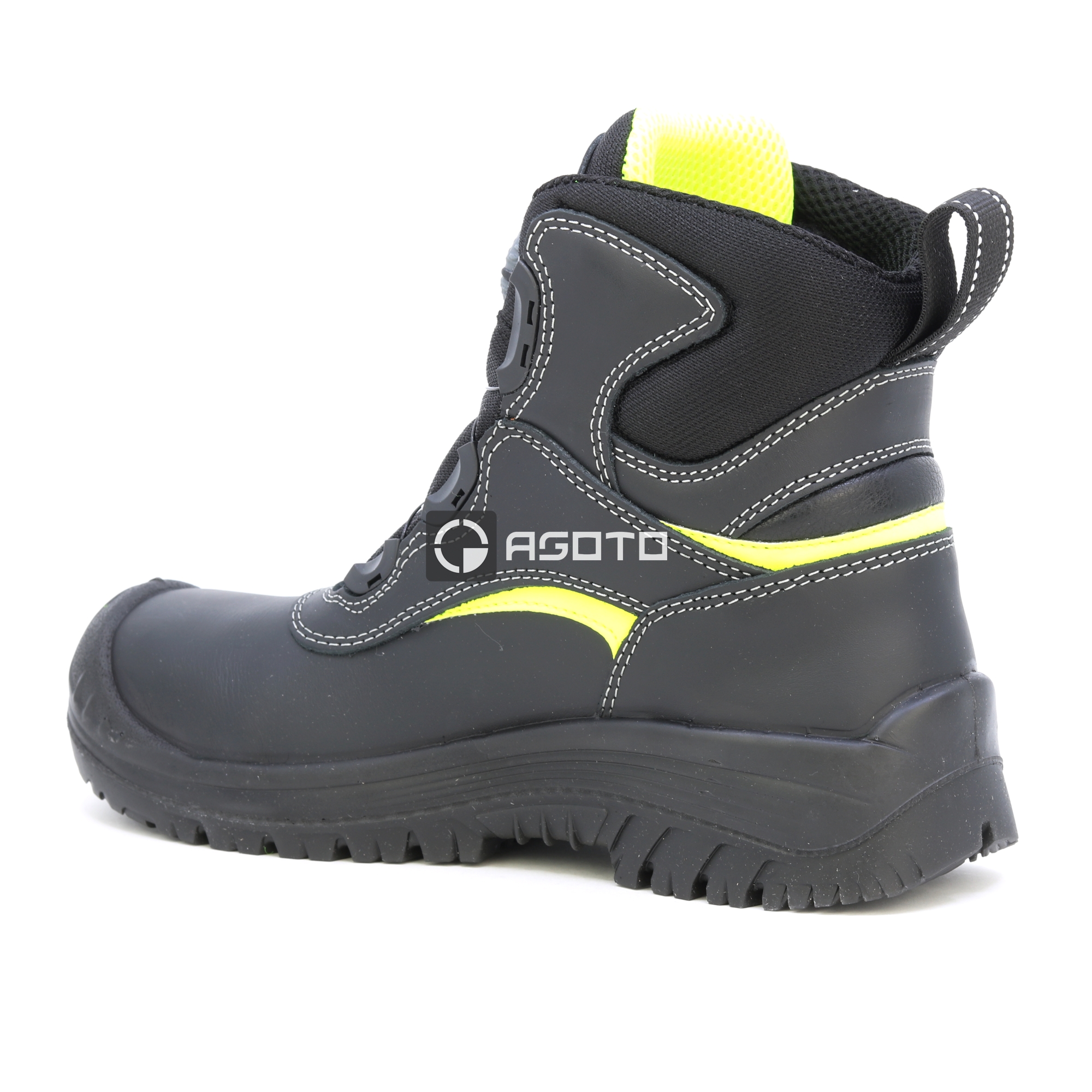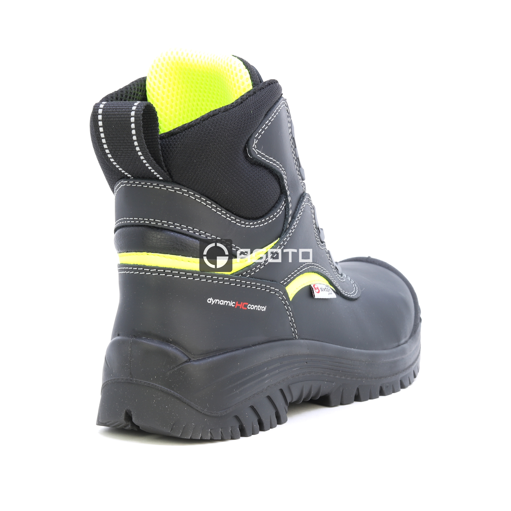 Der hohe Sicherheitsschuh S3 besteht aus stabilem, reißfestem Rindsleder, das zudem über gute wasserabweisende Eigenschaften verfügt. Das Innenfutter besteht aus 3D-Mesh und ermöglicht eine perfekte Luftzirkulation im Inneren. Die anatomisch geformte Innensohle stützt den Fuß perfekt und wirkt zudem antibakteriell. Die besonders griffige und gut profilierte Sohle besteht aus DUO PU und bietet beste rutschhemmende Eigenschaften. Die Zehenschutzkappe aus Verbundkunststoff und die durchgehende Textilsohle sind metallfrei. Durch das BOA® Drehsystem lassen sich die Schuhe schnell schließen und öffnen.