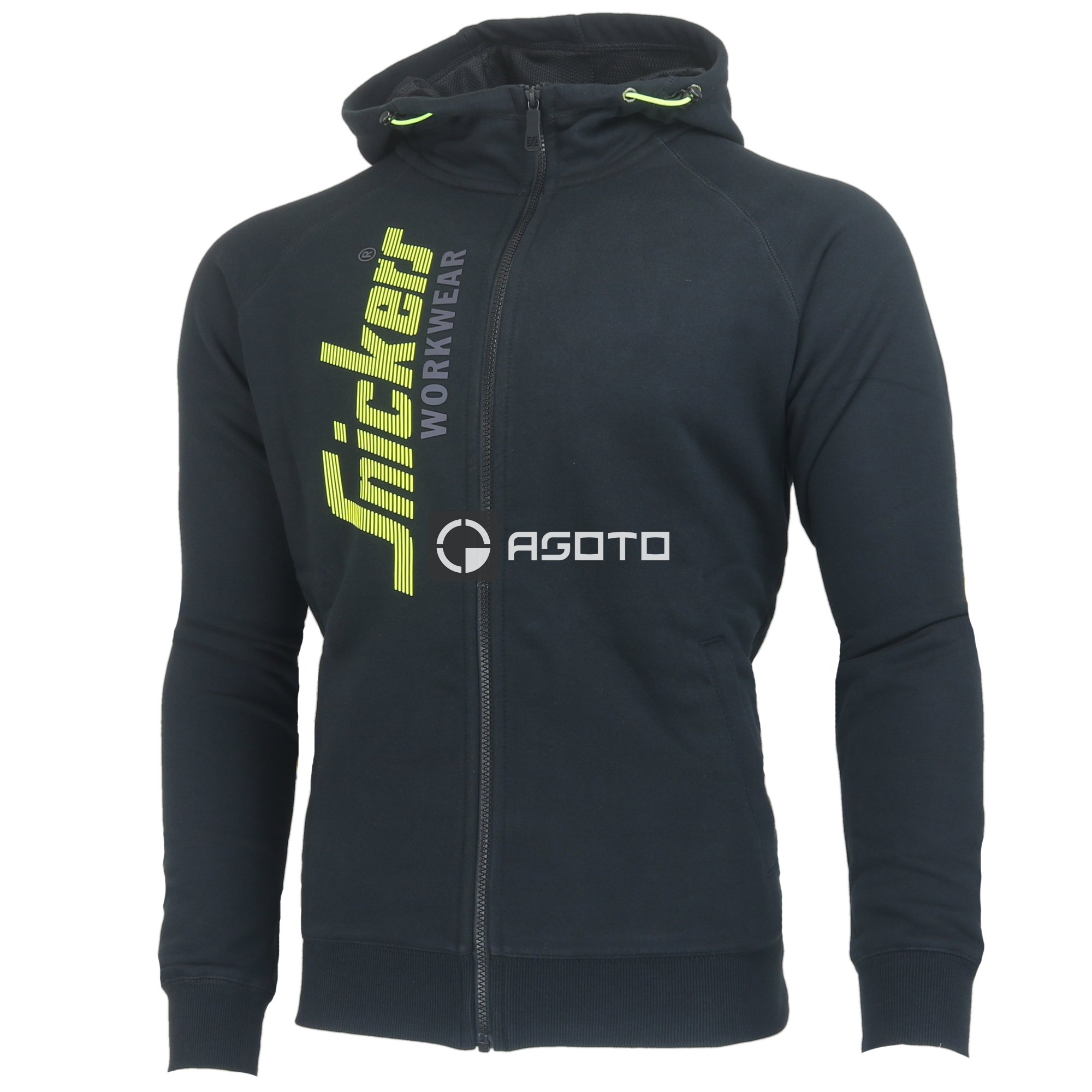 Robustes Sweatshirt/Jacke mit Kapuze und Reißverschluss. Der Stoff mit Innenkämmung, der sich angenehm anfühlt und gleichzeitig die Luft gut speichert und somit bei Kälte besser isoliert, trägt wesentlich zum Tragekomfort bei. Raglanärmel ermöglichen eine bessere Beweglichkeit der Arme und sind mit elastischen Bündchen versehen, die das Eindringen von kalter Luft und auch Schmutz beim Anziehen verhindern. Die verstellbare Kapuze ist mit Mesh gefüttert, ebenso wie die beiden geräumigen Fronttaschen. Der langlebige Reißverschluss verfügt zur besseren Handhabung über einen gummierten Schieber. Auf der Brust befindet sich ein 3D-Logo von Snickers Workwear in Neongelb.