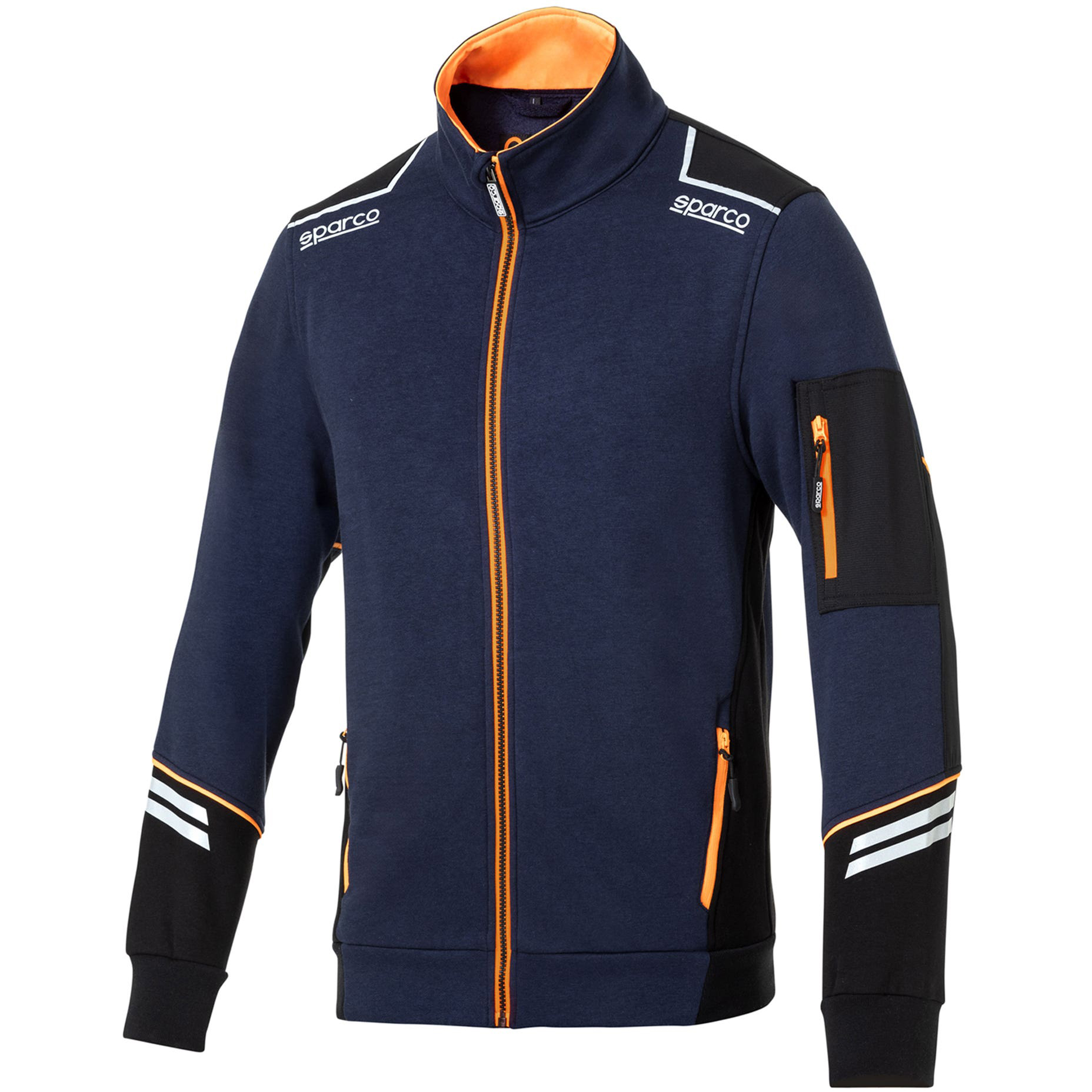 80 % Baumwolle – 20 % Polyester / 280 g/m2 reflektierende Sparco-Logos, verstärkte Ärmel mit Anti-Scheuer-Einsätzen und gut sichtbare reflektierende Streifen. Verstärkungseinsätze an den Schultern, seitlicher Ultra-Schiebereißverschluss an der Brusttasche.