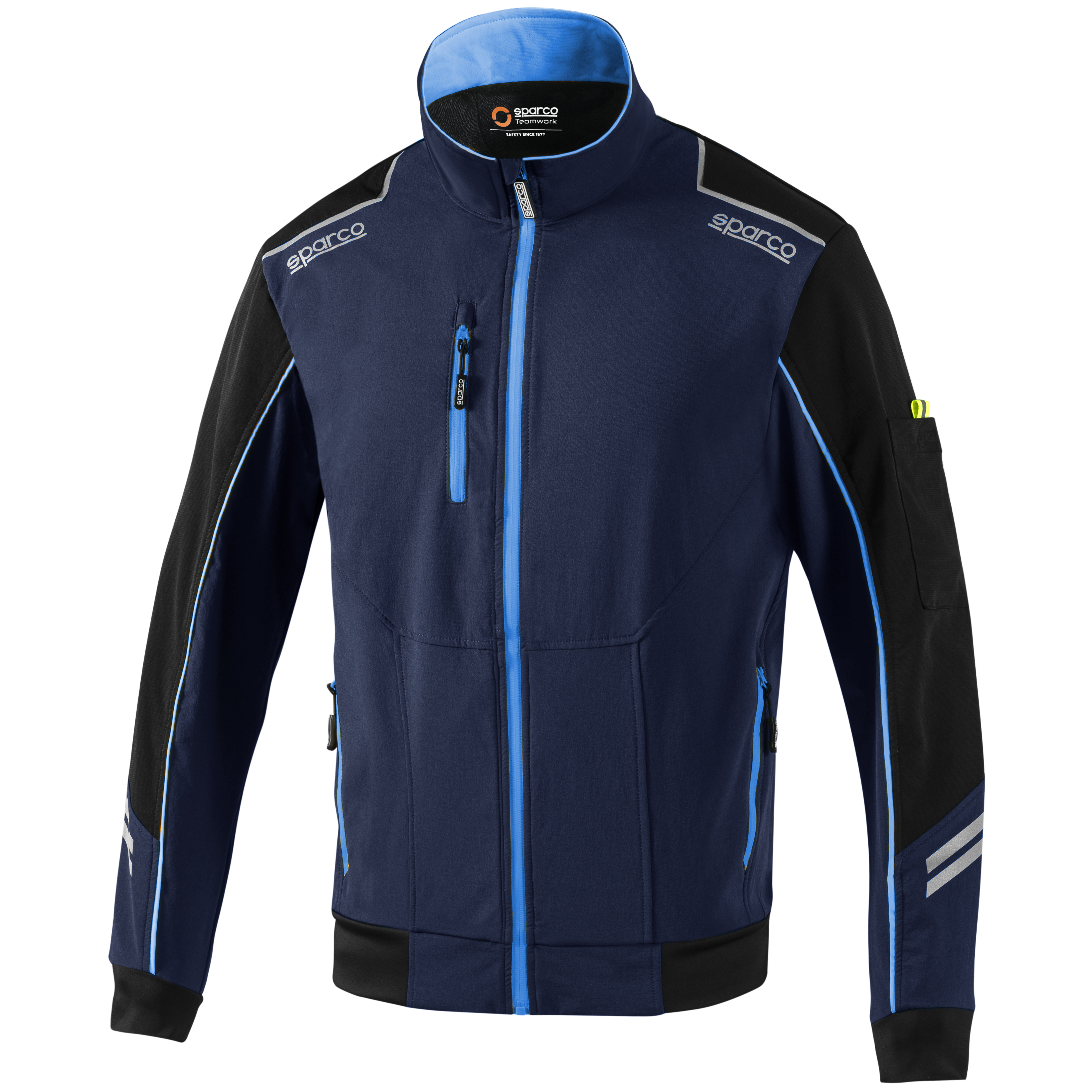 Leichte Softshell-Jacke von Sparco, die wind- und wasserdicht ist. Sie ist mit einem Fleece-Innenfutter ausgestattet. Material: 90 % Nylon - 10 % Spandex / 240 g/m2 Innen: 100 % Polyester (Polarfleece) Reflektierende Sparco-Logos, verstärkte Schulterpolster, Schultern und Ärmel aus abriebfestem Material. Beschichtete wasserdichte Reißverschlüsse, Seiten- und Brusttaschen mit gut sichtbaren Reißverschlüssen, Reflexstreifen an den Ärmeln, Superstretch-Stoff an den Bündchen, verstellbares Innenfutter für maximale Passform.