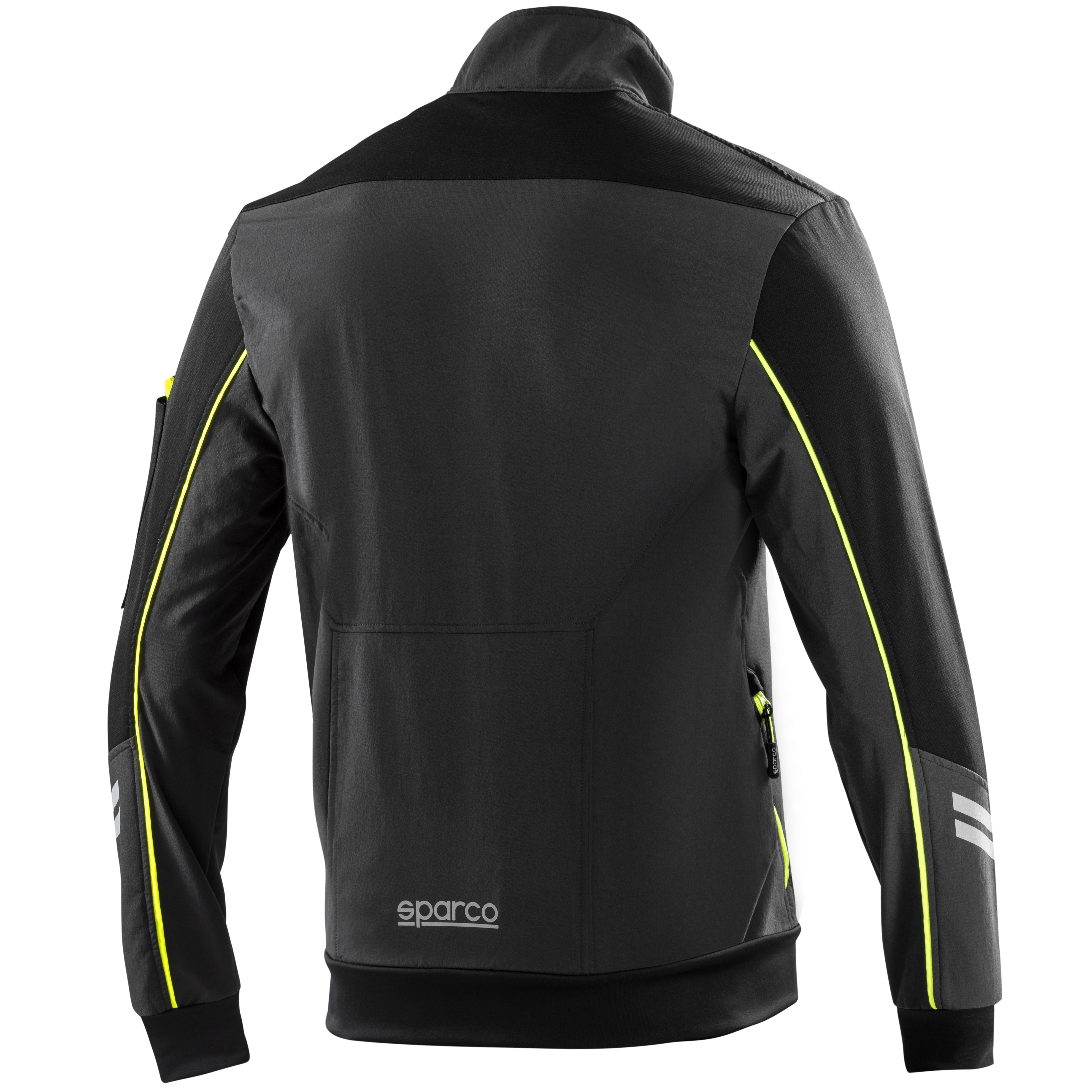 Leichte Softshell-Jacke von Sparco, die wind- und wasserdicht ist. Sie ist mit einem Fleece-Innenfutter ausgestattet. Material: 90 % Nylon - 10 % Spandex / 240 g/m2 Innen: 100 % Polyester (Polarfleece) Reflektierende Sparco-Logos, verstärkte Schulterpolster, Schultern und Ärmel aus abriebfestem Material. Beschichtete wasserdichte Reißverschlüsse, Seiten- und Brusttaschen mit gut sichtbaren Reißverschlüssen, Reflexstreifen an den Ärmeln, Superstretch-Stoff an den Bündchen, verstellbares Innenfutter für maximale Passform.