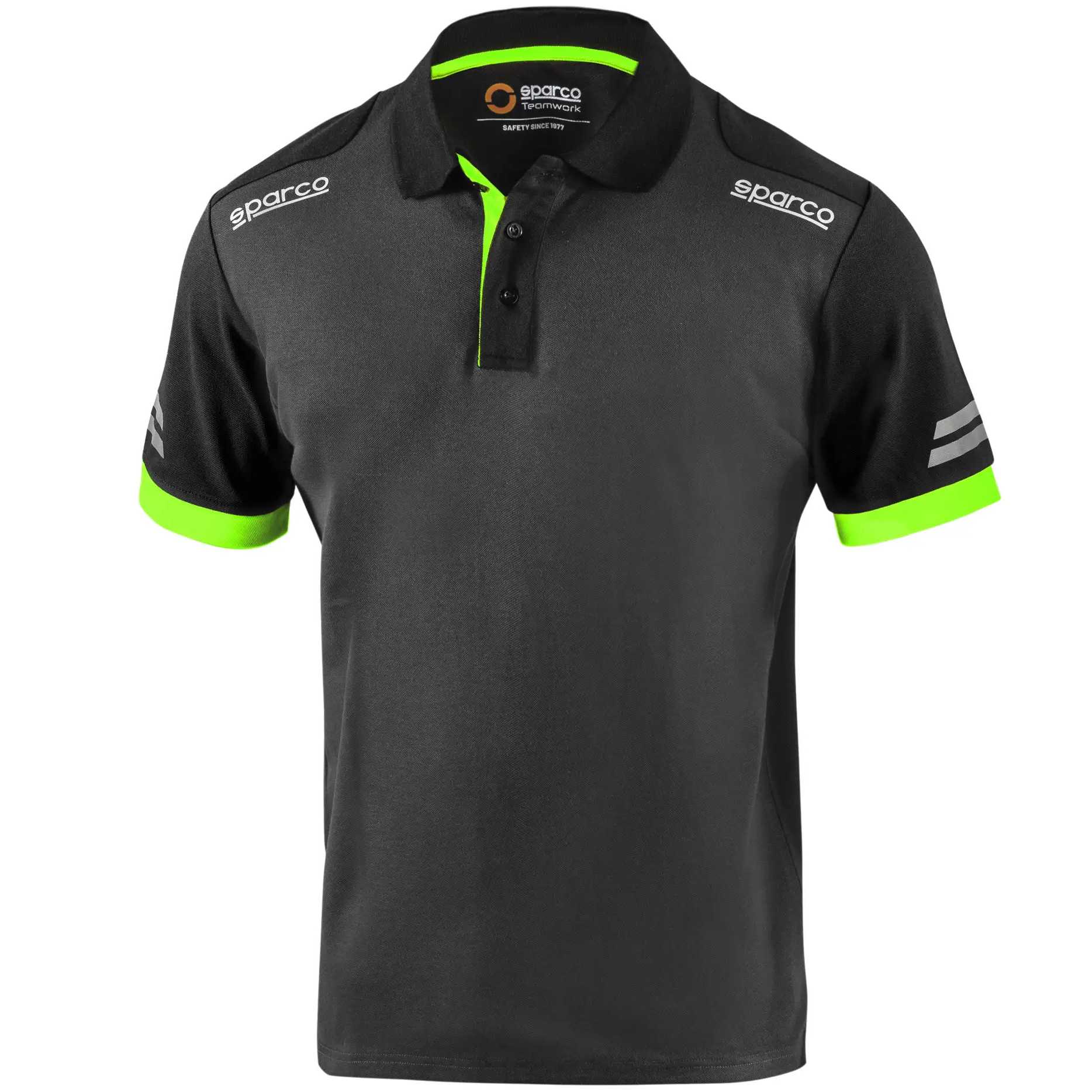 65 % Baumwolle – 35 % Polyester mit Piqué-Effekt / 180 g/m2, reflektierende Sparco-Logos, hochsichtbare Streifen an den reflektierenden Ärmeln, kontrastierende Einsätze an Ärmeln und Kragen, verstärkte Schultern und Kragenverschluss mit 3 Knöpfen, seitliche Schlitze am unteren Saum.