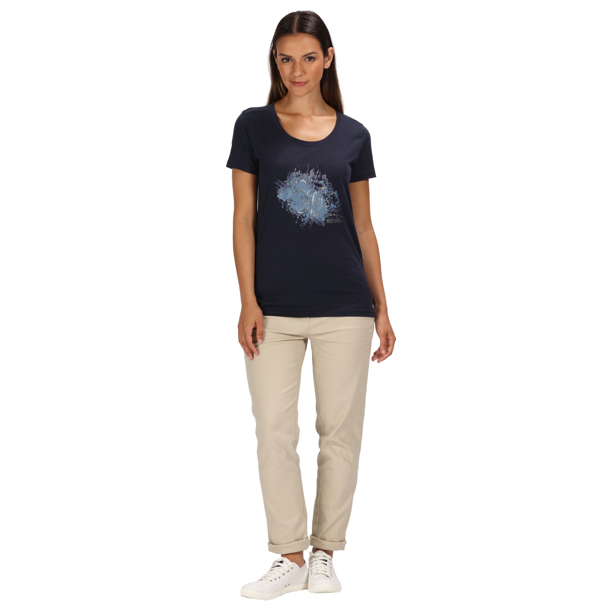 Dámské tričko s krátkým rukávem Regatta Filandra III. Technologie Coolweave s chladícím účinkem. Bavlněná vlákna mají zcela přirozený chladicí účinek přímo na kůži. Potisk na přední straně. Materiál: 100% bavlna.