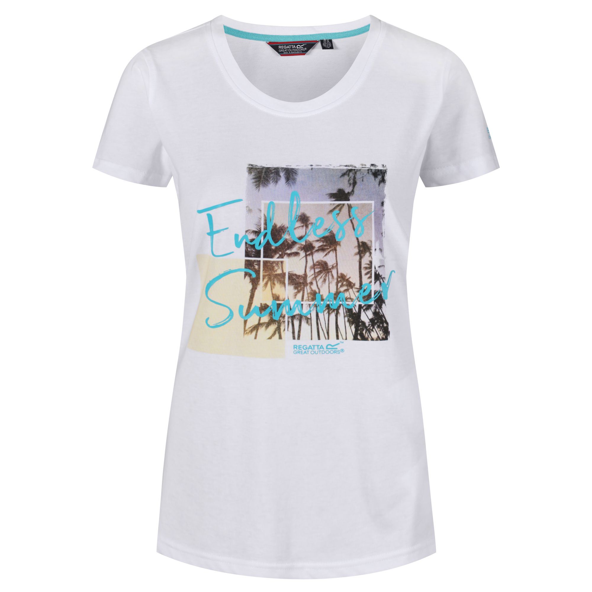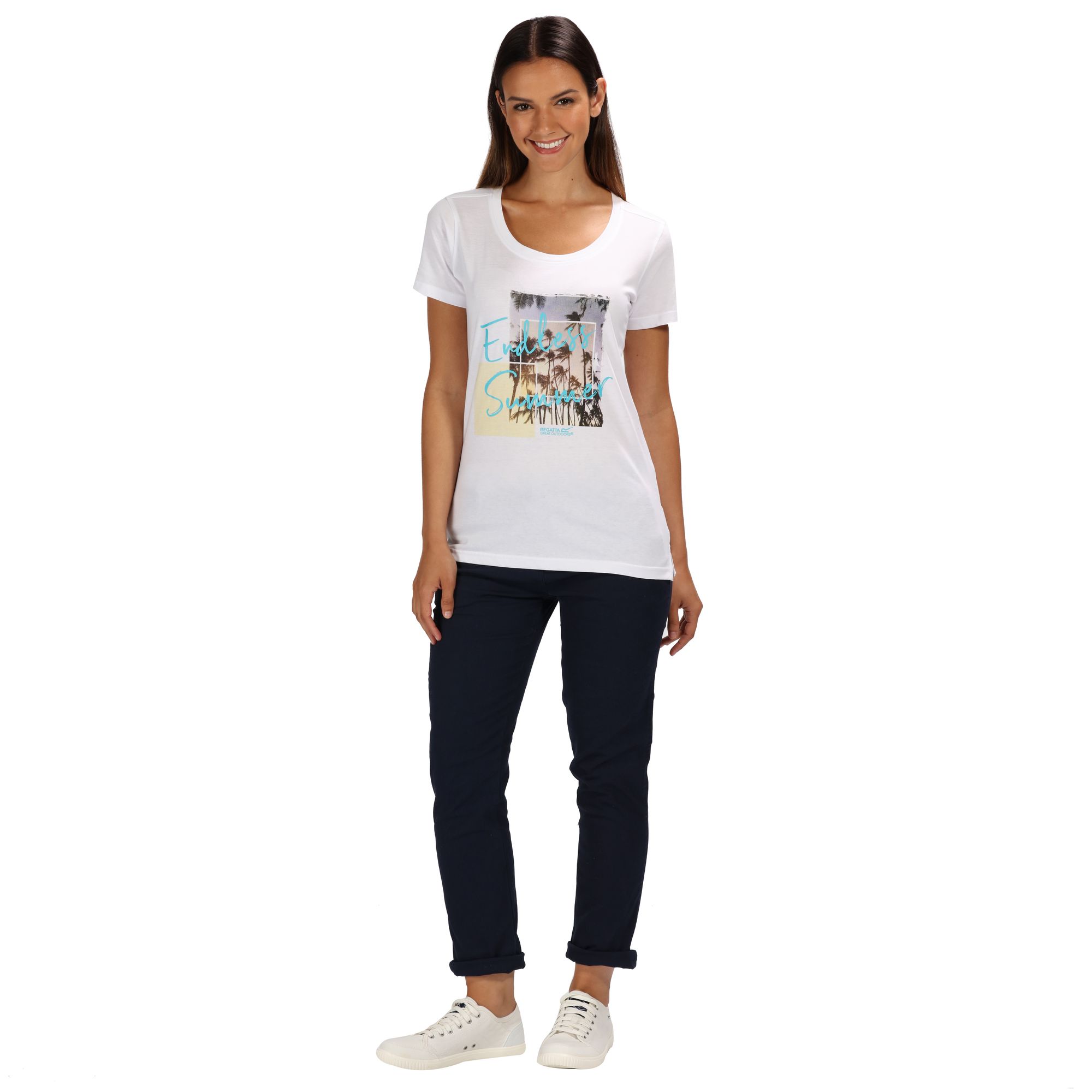 Dámské tričko s krátkým rukávem Regatta Filandra III. Technologie Coolweave s chladícím účinkem. Bavlněná vlákna mají zcela přirozený chladicí účinek přímo na kůži. Potisk na přední straně. Materiál: 100% bavlna.