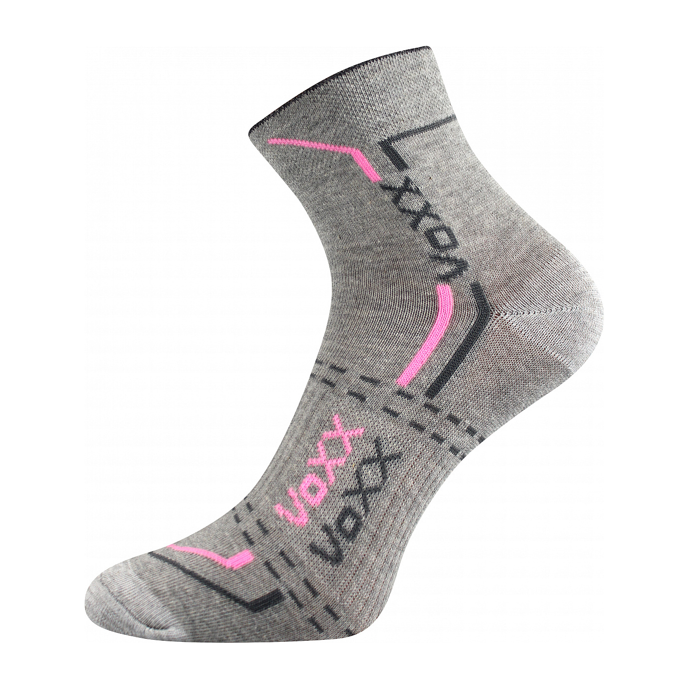 Die Damensocken VoXX® FRANZ 03 sind Sportsocken für jede Frau. Die feuchtigkeitsabsorbierende Baumwolle wird durch Elasthan ergänzt, das den Socken Elastizität verleiht und gut am Fuß sitzt. Die dünnen Socken in mittlerer Höhe über dem Knöchel sind hervorragend luftdurchlässig, die elastische Zone über dem Spann verhindert ein Verrutschen der Socken im Schuh. Bunte Socken für Fitness und sportliche Aktivitäten, bis hin zum Radfahren, werden im Sommer viel genutzt. Sie gehören zur Temperaturklasse A von +10°C bis +35°C. Baumwolle 80%, Polyamid 10%, Polypropylen 5%, Elasthan 5%.